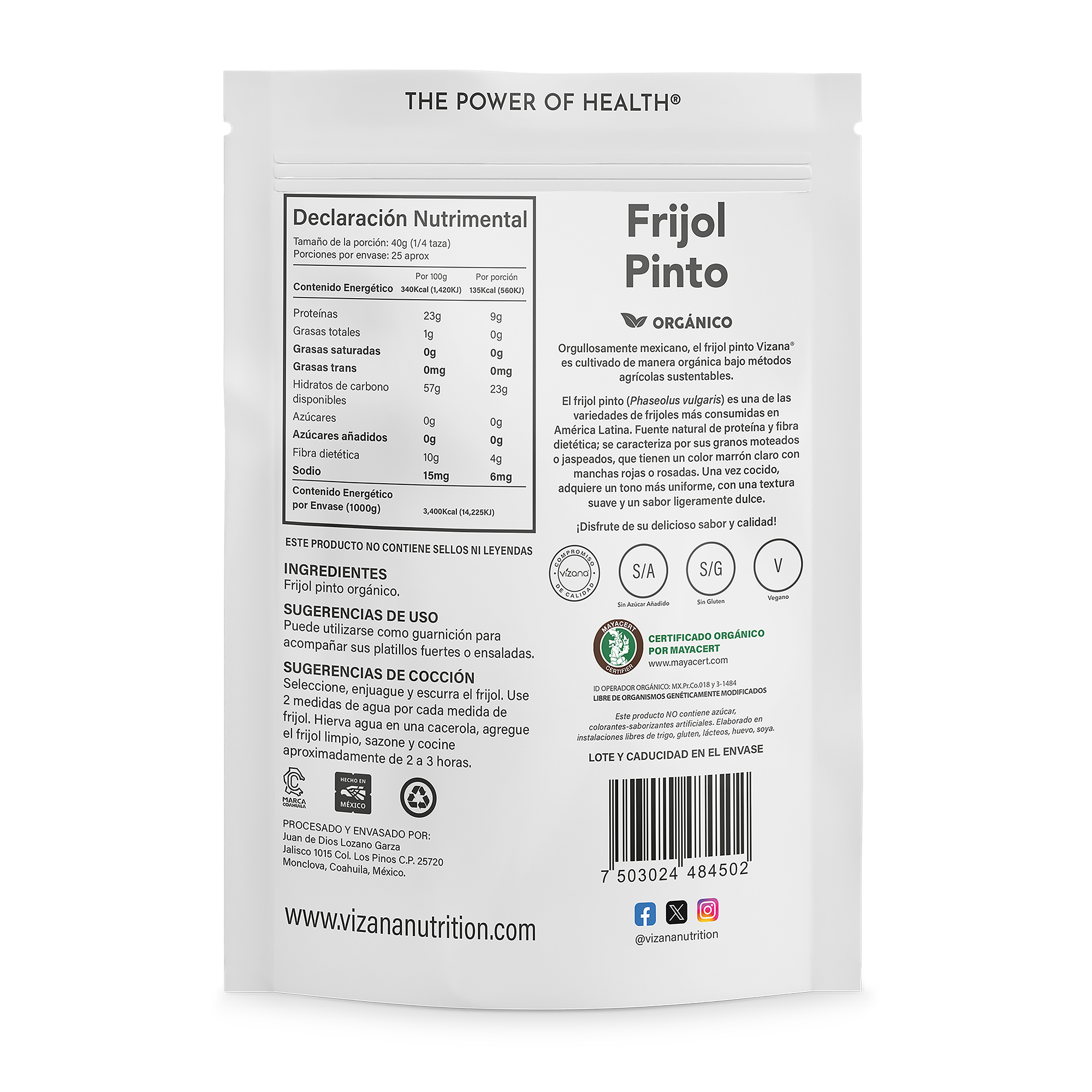 Orgullosamente mexicano, el frijol pinto Vizana® es cultivado de manera orgánica bajo métodos agrícolas sustentables.