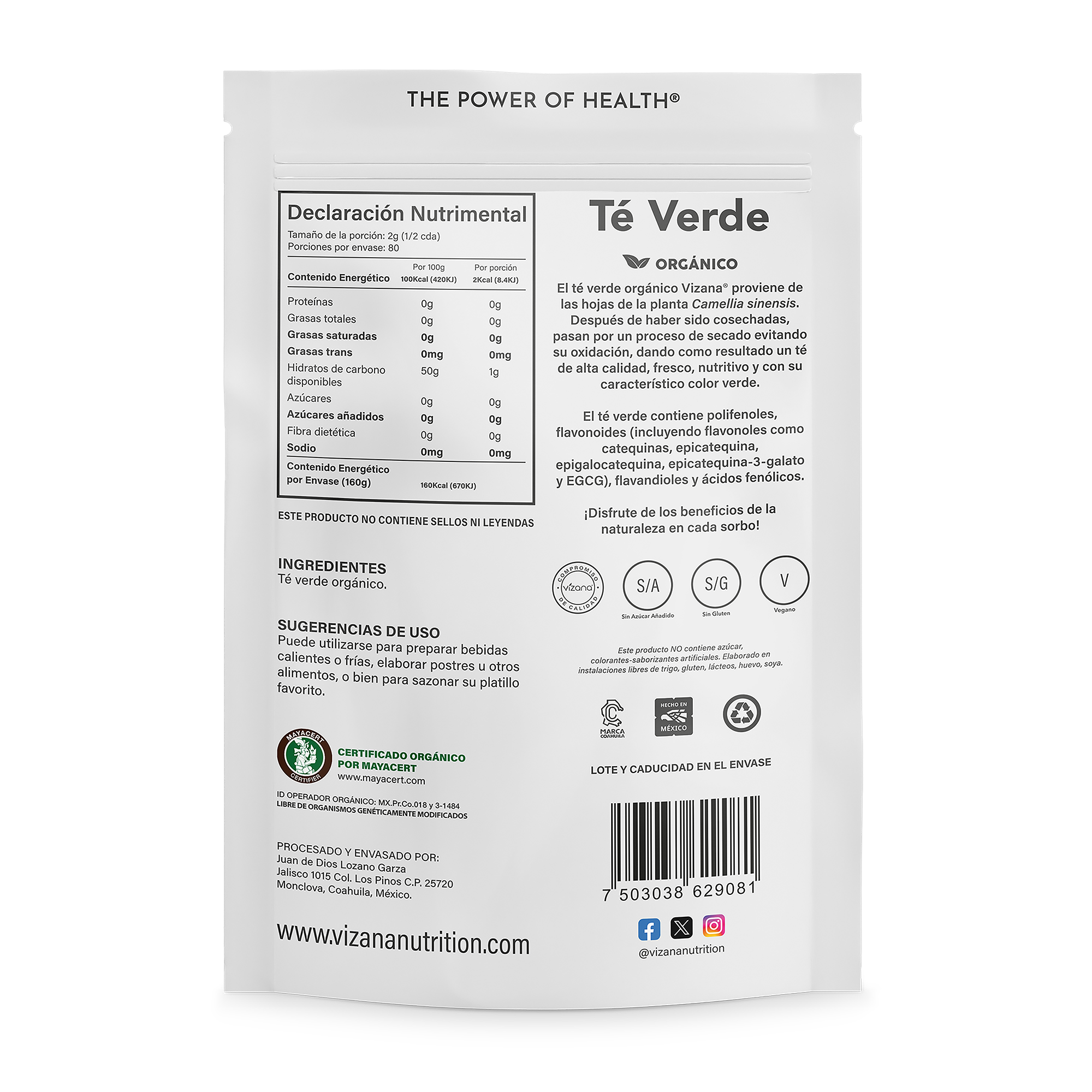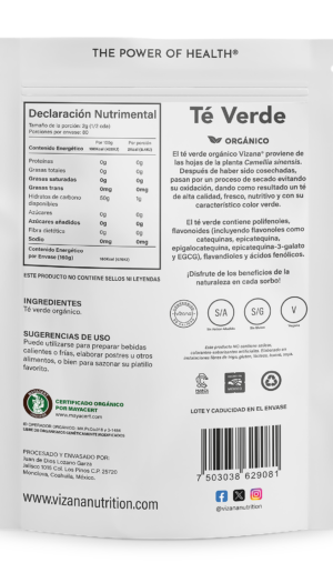 El té verde orgánico Vizana® proviene de las hojas de la planta Camellia sinensis.