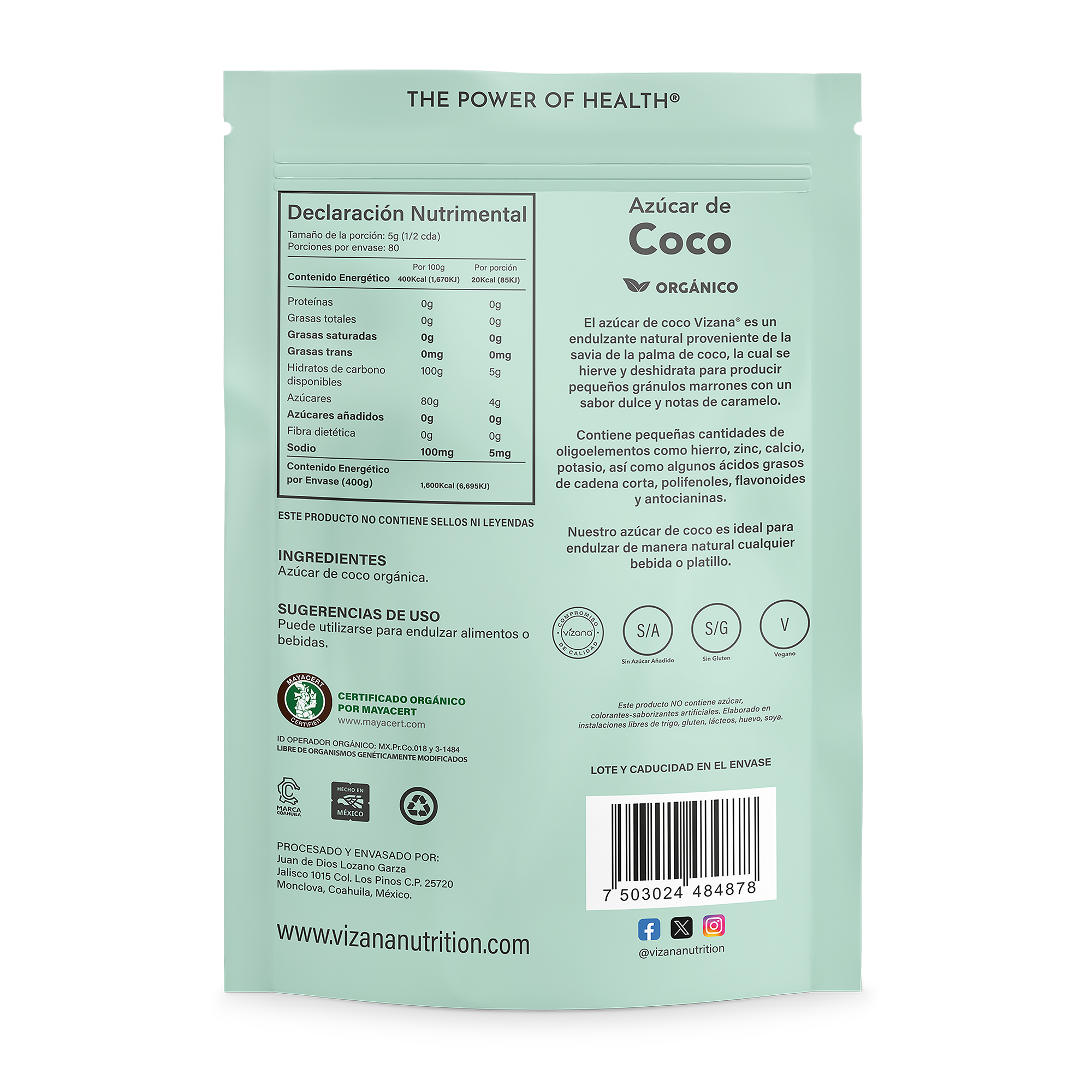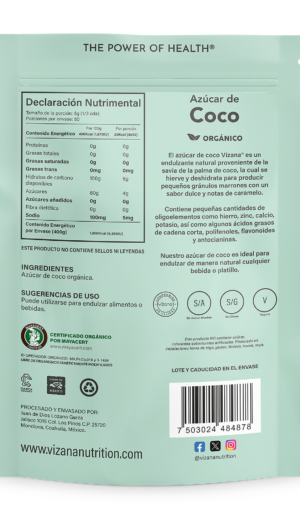 El azúcar de coco Vizana® es un endulzante natural proveniente de la savia de la palma de coco, la cual se hierve y deshidrata para producir pequeños gránulos marrones con un sabor dulce y notas de caramelo.