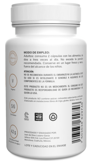 Adultos: consuma 2 cápsulas con los alimentos, de una a tres veces al día. No exceda la porción recomendada.
