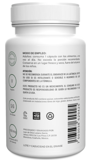 La vitamina B12 en su forma metilcobalamina es clave para la salud del sistema nervioso y la producción de energía celular. Contribuye a la formación de glóbulos rojos, al mantenimiento de la función cognitiva y al metabolismo adecuado de la homocisteína, apoyando la salud cardiovascular. Su forma activa y altamente biodisponible permite una mejor absorción y aprovechamiento por el organismo, favoreciendo la claridad mental, la vitalidad y el bienestar neurológico.